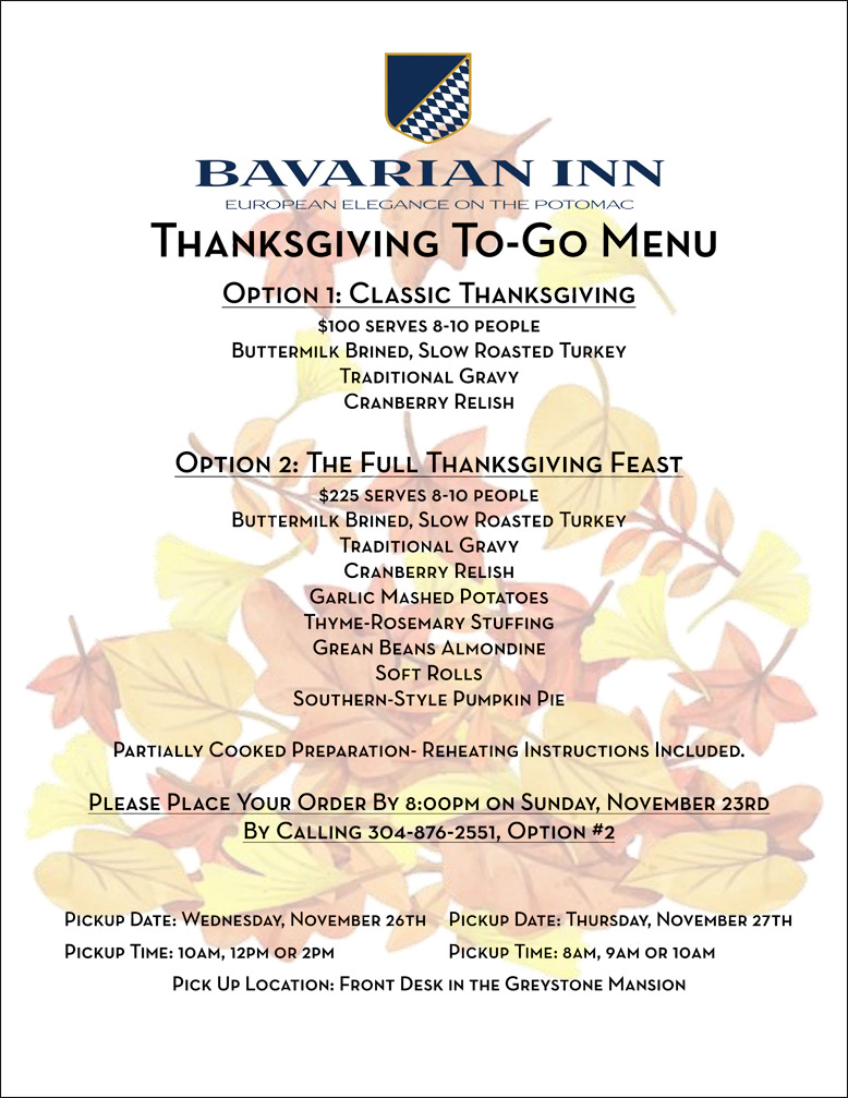 Call for Thanksgiving Day reservations - 304-876-2551, Option 2.